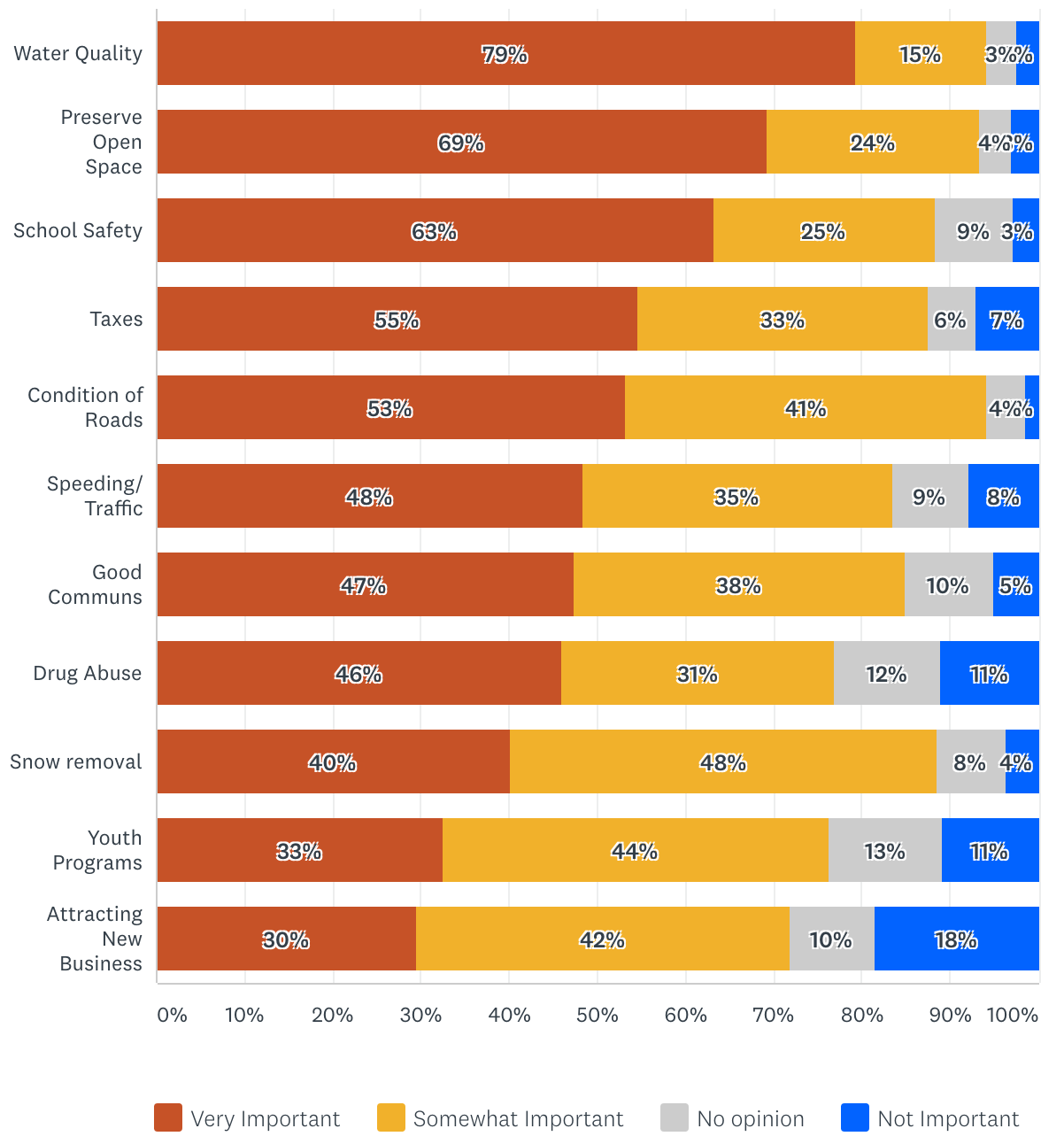 - More respondents say that the preservation of open space and curbing overdevelopment is “Very Important.” Again, not surprising (read “Another Proposed Project on Newtown Bypass” and “Newtown Residents Lash Out Against Arcadia Settlement”);