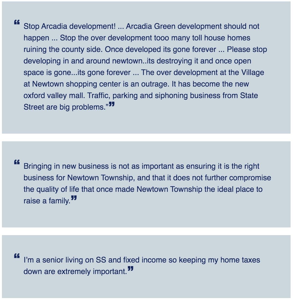 DISCLAIMER: THIS IS NOT A NEWTOWN TOWNSHIP APPROVED SURVEY. IT IS SOLELY A SURVEY POSTED BY JOHN MACK ACTING AS A PRIVATE CITIZEN. YOU MAY REMAIN ANONYMOUS - YOUR PERSONAL INFORMATION IS NEVER REVEALED WITHOUT YOUR PERMISSION.