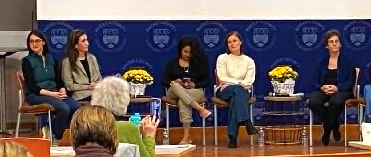 Participating in the forum were Ashley Ehasz, U.S. Army veteran; Leah Greenberg, co-founder of Indivisible; Dr. Jess Klemens, a OBGYN serving Bucks, Montgomery and Philadelphia counties; Kathryn Kolbert, a public interest attorney who argued the Planned Parenthood v. Casey case at the U.S. Supreme Court; and Dr. Anusha Viswanatha, Pediatric Infectious Disease Physician; Social Justice Indivisible; and Indivisible Bucks County.