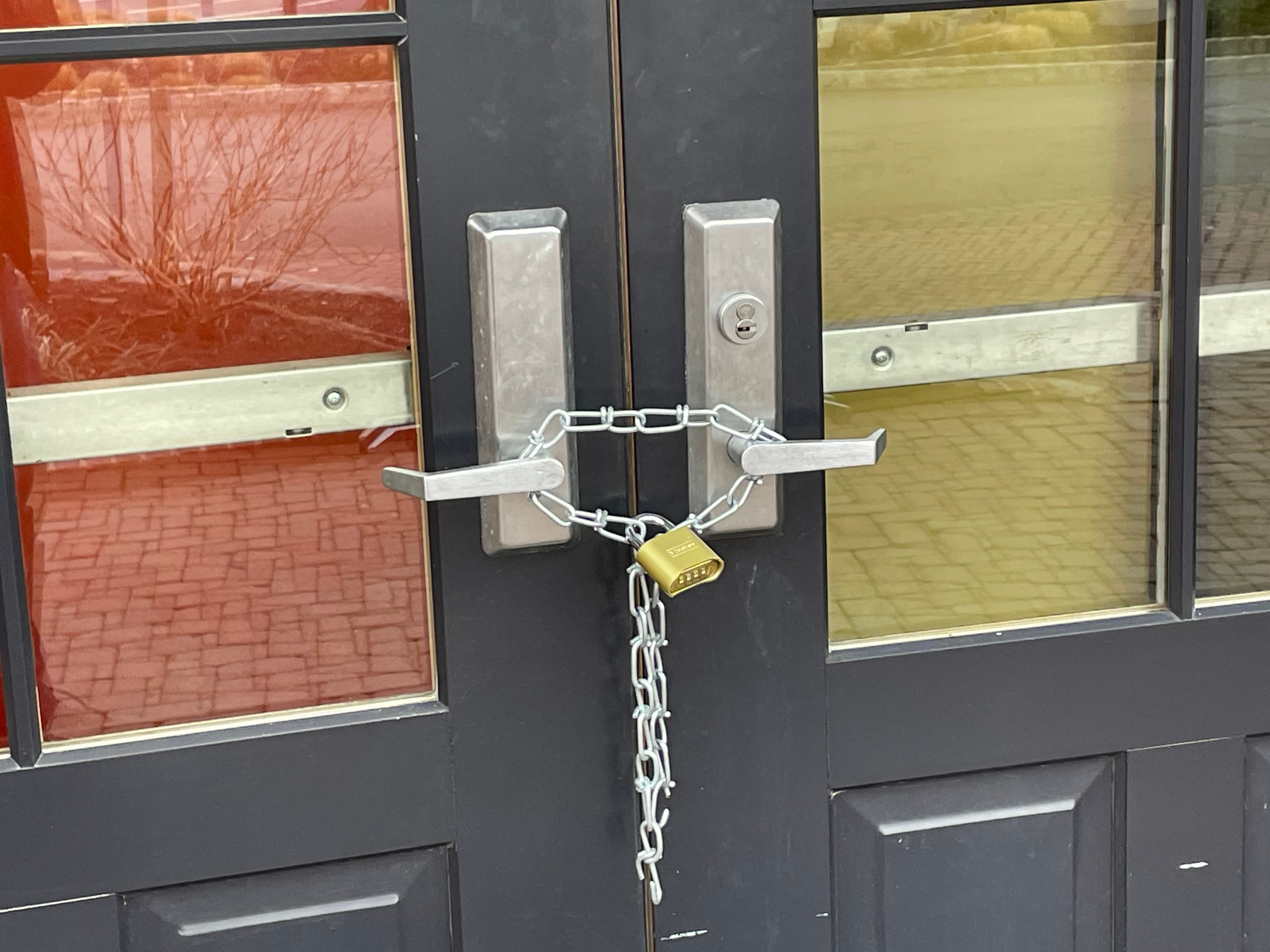 The doors of the former Zoës Kitchen are padlocked.