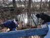 The group spent about three hours in the morning cleaning the creek, piling up enough refuse to fill a 20-foot dumpster. After lunch, those who were still present helped to stock the creek with roughly 2,200 trout, which the Anglers raise in their own co-operative trout nursery (located within the park). The nursery is the first of its kind in Montgomery County.