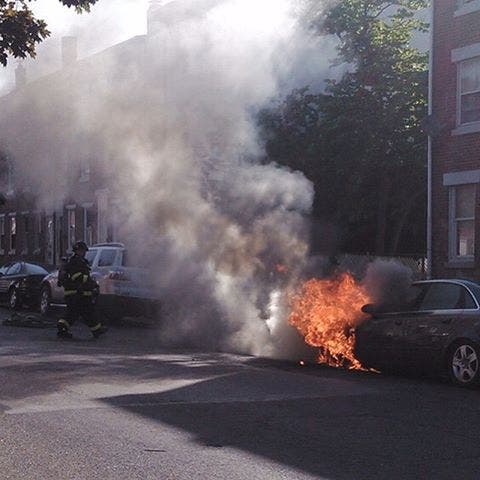 A vehicle caught on fire on George Street in Norristown Tuesday morning, according to Norristown Fire Chief Tom O’Donnell.