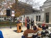 The banner honors Captain Samuel Schultz, a Huntingdon Valley native and graduate of Abington Senior High School. It was unveiled at Montgomery County Courthouse PlazaMonday morning as part of the Veterans Day holiday remembrances.
