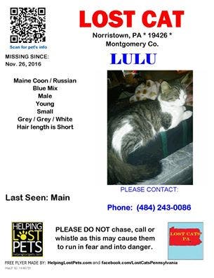 NORRISTOWN, PA -- Lulu the Maine Coon cat has gone missing in Norristown.