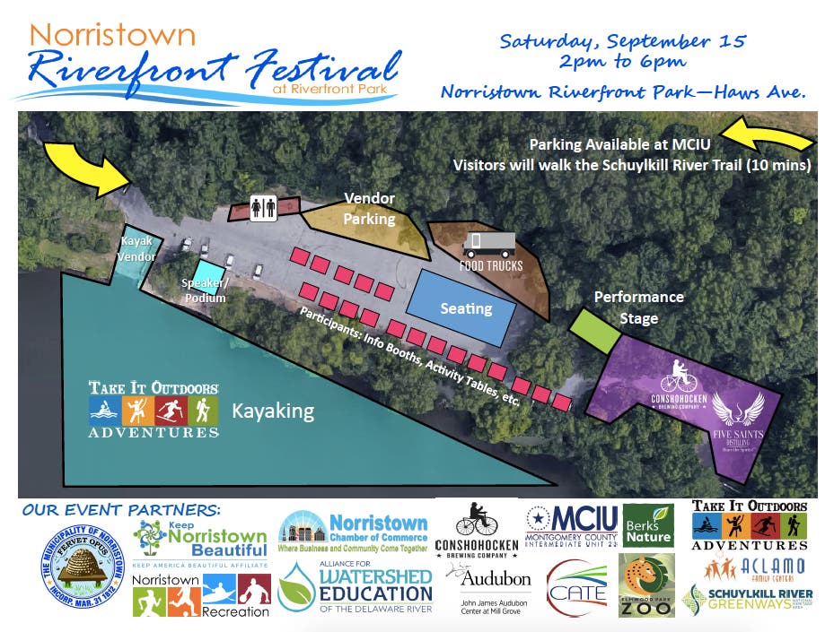 NORRISTOWN, PA — Norristown's Riverfront Festival is scheduled for this weekend, Saturday, Sept. 15. It will run from 2 p.m. to 6 p.m. at Riverfront Park, located on Haws Avenue.