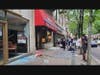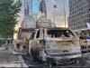Videos shared across social media showed large groups gathering around businesses, hurling metal chairs against glass doors until they shattered. Several vehicles as well as a Starbucks were set on fire in the area of City Hall.