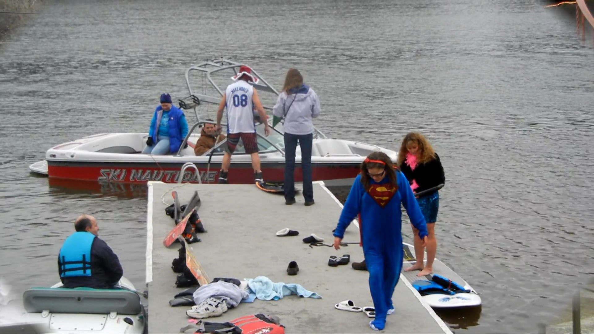 Anyone willing to sign a waiver and make a donation can come out on New Year’s Day and water ski. “Ideally you’ll know how to water ski – it’s not a good time to learn,” Birsa said of participants. Spectators are welcome to cheer on the participants, and often come with noisemakers from the previous night’s festivities.