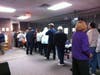 Voters didn't seem to mind the wait, as no one left the line. People passed the time by chatting on their phones, looking over the campaign literature and browsing the web on their phones.