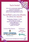 The exclusive major sponsor of the 2012 Graduation is First Federal of Bucks County, and the gold sponsor is Patrick & Carol Counihan with Merck. Our silver sponsors are DVL Group, Inc., Lore and Bob Eichfeld, Teva, Curtin and Heefner LLP, Fulton Bank, St. Mary Medical Center, and First Savings. Our bronze sponsors First National Bank and Trust Company of Newtown, Baum Smith & Clemens LLC, Jean Coyle, National Penn Bank, Jim Dowling, Shechtman Marks Devor PC, Bohmora, Inc. and Hill Wallack. Thank you to all our sponsors and the community for their support.