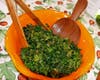 - Rinse and dry the kale leaves. Shave the kale leaves away from the spine and discard the spines. Cut kale leaves as you would for a salad and place in salad bowl.