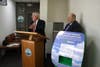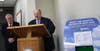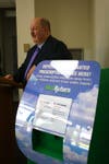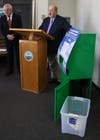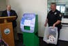 Police Chief Barry Pilla and District Attorney David Heckler displayed the Med-Return box that will be available 24/7 at the police station.