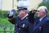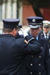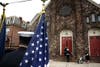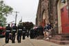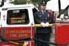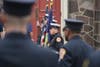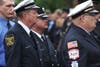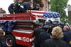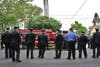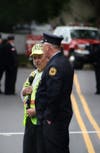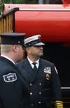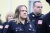 As the mass ended, the uniformed men and women of local fire service saluted as the casket of their fallen comrade was carried and lifted onto the back of an older model engine truck.