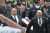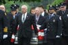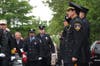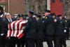 Fire trucks and medic units–more than 80 in total–lined Radcliffe Street as an on-and-off drizzle fell Monday, but every firefighter that Patch talked to said paying their respects to a firefighting brother was the least they could do.