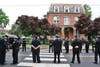 Next, the funeral procession passed by the Bristol Fire Company Station on Wood Street, then a short ceremony was held at the site of Wintz's last post outside the Dow facility.