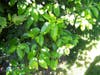 Portugal Laurel (Prunus lusitanica). This evergreen shrub (or small tree) has shiny bright green foliage on red stems that take on a bluish tinge in winter. The tree reaches 10 to 20 feet in the average residential setting, while it can grow up to 50 feet tall in the wild. It will produce many beautiful five- to ten-inch white flowers in late May, followed by small purplish-red cherries that darken in fall. The birds will eat these cherries after they ripen. Plant this drought-tolerant tree or shrub in partial sun. Use it as a hedge or specimen plant.