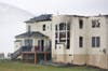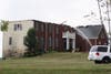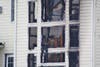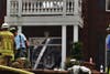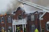 By 2 p.m., all three floors of the home appeared to be destroyed by fire. Crews on the ground and using ladder trucks were still working to quell hot spots.