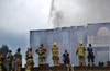For more than two hours Saturday afternoon, firefighters from several local departments, including , doused a home in the 100 block of Jane Chapman Drive in Wrightstown with water and foam.