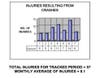 According to traffic crash data for the time period between January and July 2012, 369 total crashes occurred in the township, with a monthly average of about 53 crashes. During the same period of time, 57 injuries happened as a result of those accidents. The monthly average is roughly 8 injuries.