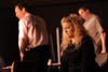 The dialogue-heavy script runs the risk of becoming “talking heads,” with only a few action scenes. Froberg avoids this by utilizing various destinations on the raised platform stage to keep the performers moving, allowing them to physically join, shun or attack others.