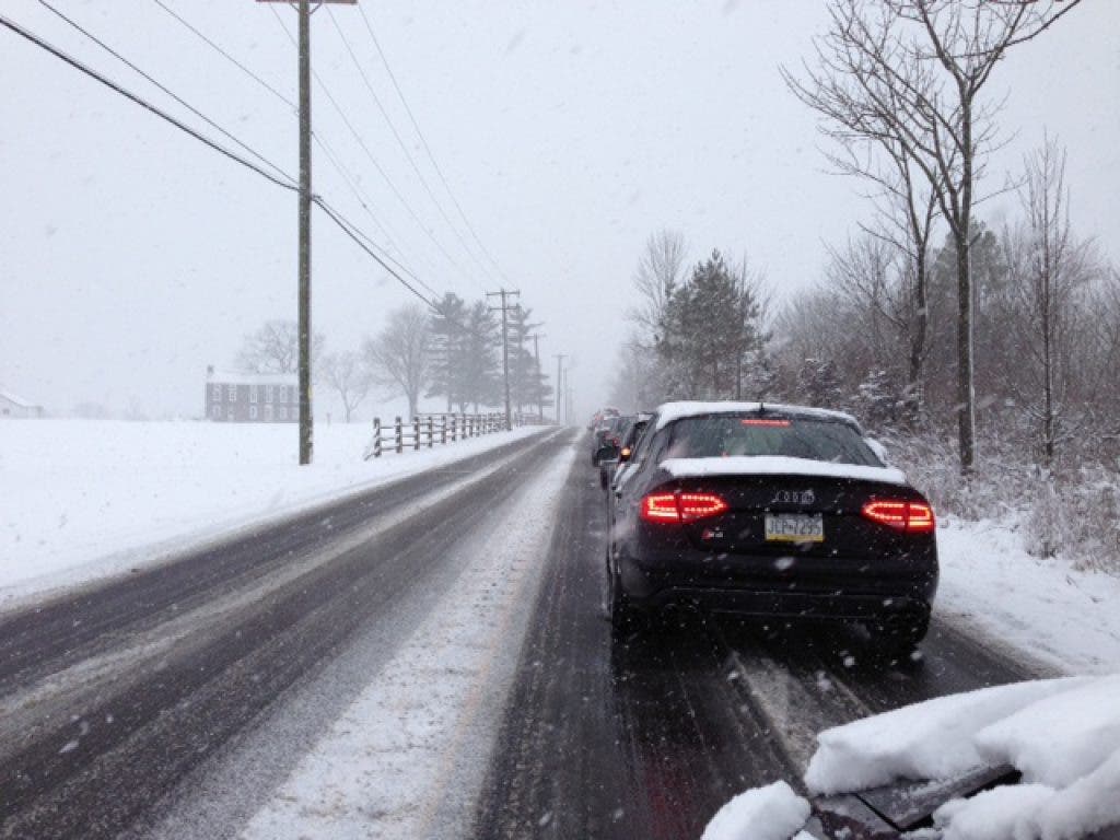 Overnight snow caused messy driving conditions Friday morning, resulting in accidents, cars off the roadways and traffic jams.