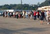 Several hundred people were waiting in line this morning when the ribbon was cut, opening the new Bottom Dollar Foods store in Ross Towne Center, located at 7221 McKnight Road.