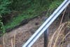 Utility crews spent several hours relocating a natural gas line which ran underneath the road. In additions to tons of mud, dirt, and asphalt from the road, a 60-foot tree slid down the hillside, but remained upright.