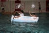 A total of seven teams of students crafted their own boats to race across the high school pool. The boat was required to travel four lengths of the pool carrying two students who paddled the vessel.