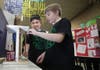 Students clad in black and green science fair t-shirts emblazoned on the back with bright yellow “Caution: Scientist at Work” signs proudly showed off and explained their projects and checked out those of their friends.