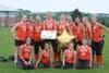 Vikings coach Dan McLaughlin presented Marcavage with the game ball following the first end of the twin bill. Marcavage and her teammates celebrated the achievement after the games were finished and Perk Valley had claimed the third seed.
