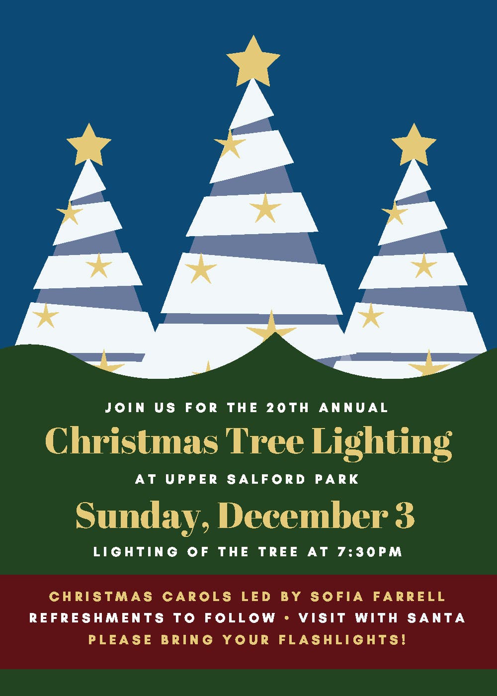 Christmas Tree Lighting, Sunday December 4th at 7:30PM at Upper Salford Park