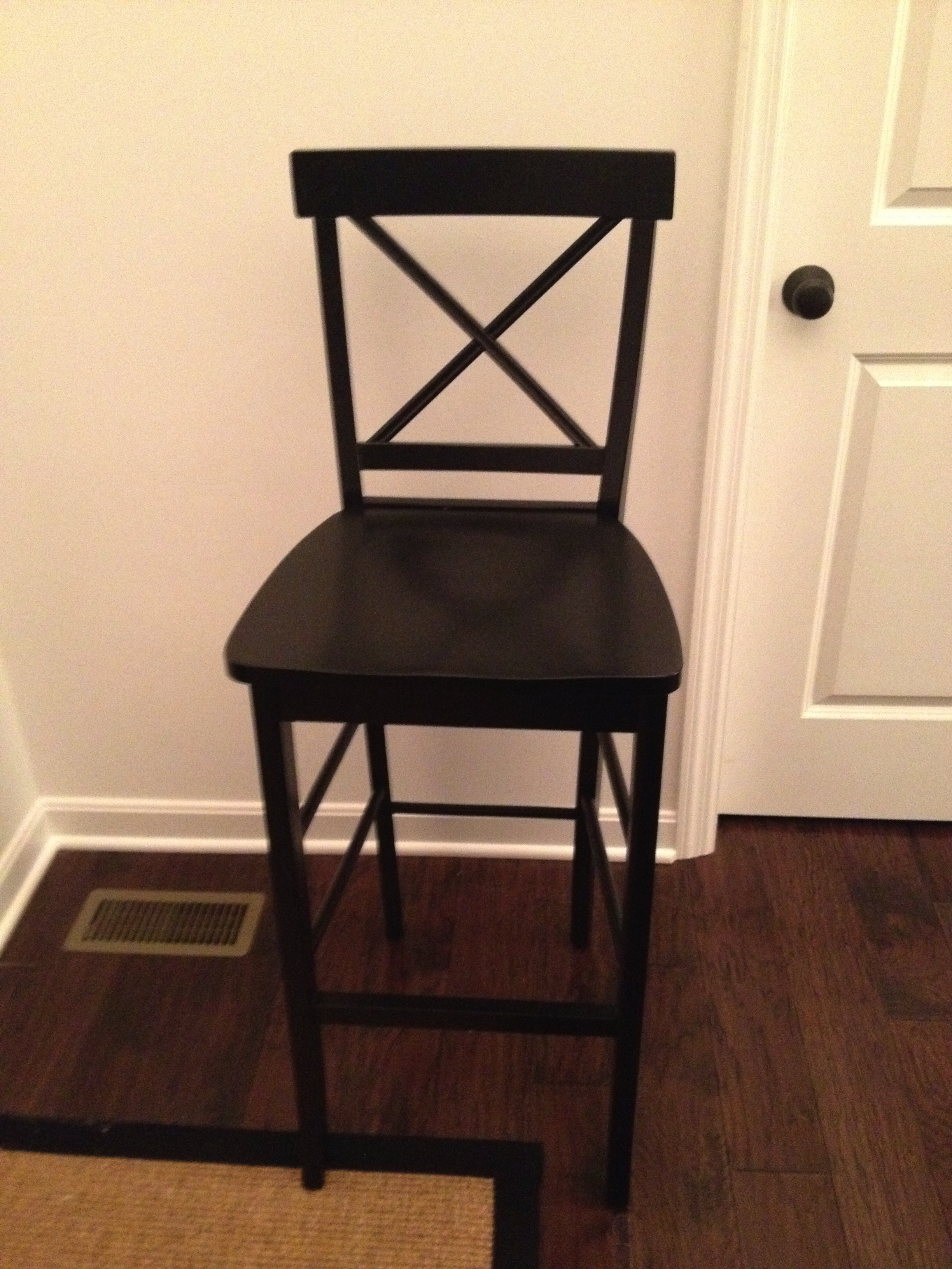Tall solid wood bar stools. Â Black. Â 30" seat height. Â Excellent condition. Â Set of 4. Â $30 / chair. Â