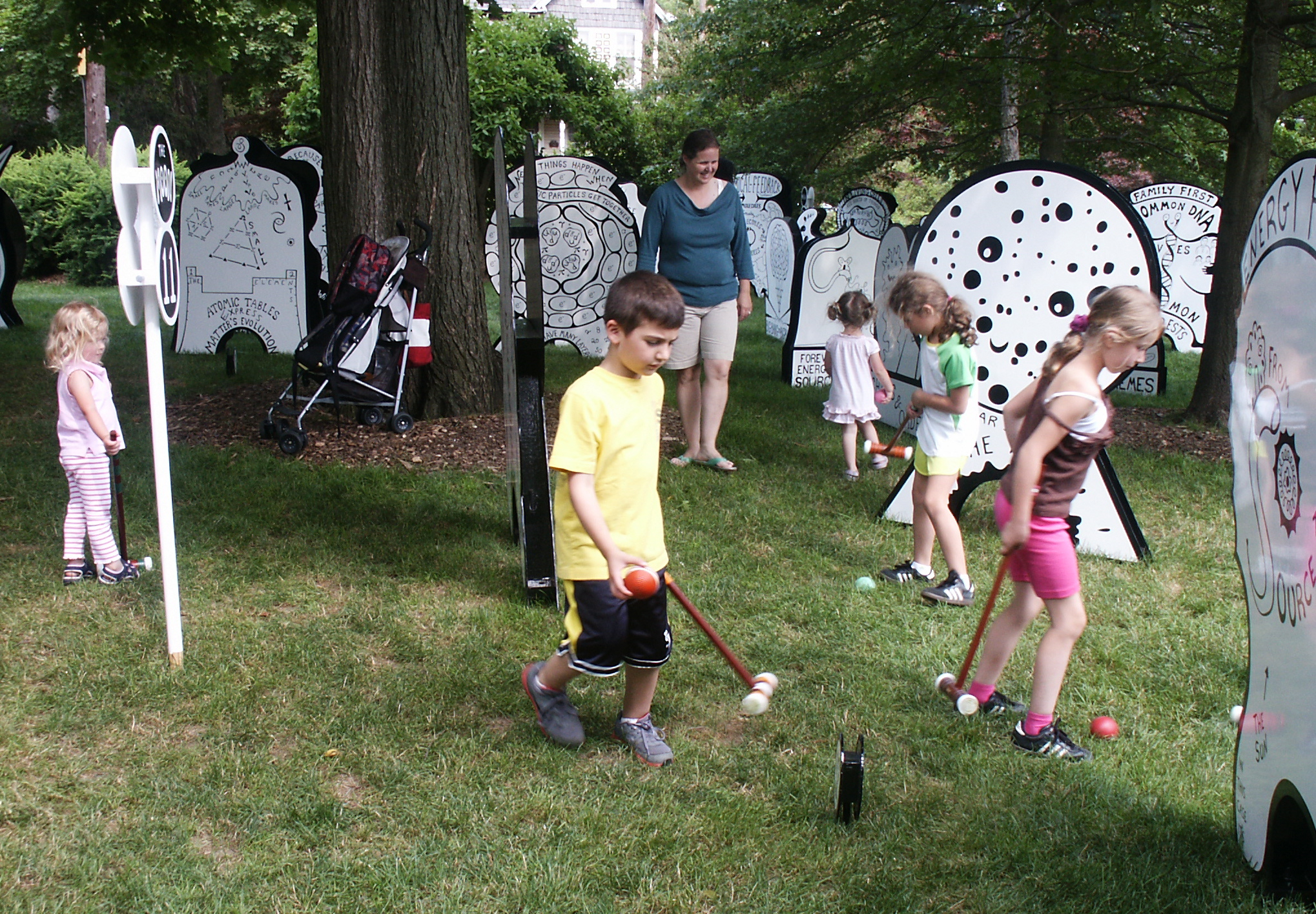 I have a croquet style miniature golf course that tells the story of the Big Bang and all that emerged. It's unique and scientific. And would make money if I had a big lawn to spread it out on. If you have, or if you know of such a lawn contact me and we're in business. jasonwhomer@comcast.net
