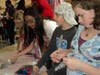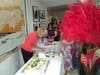 At the end of her talk, Sharon Haramic and Debbie Kartik, wheeled out a large king cake and began serving up slices as they doled out punch. With the aid of Maddie Siegel, the young adult librarian, children and young adults were invited to create their own colorful carnival masks with beads, stickers and feathers.
