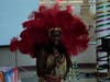 Margaret Deitzer introduced the flamboyantly-dressed lecturer, who danced down the staircase to a Latin beat. Yorke, bedecked in feathers and sequins, shook and shimmied for the audience. She described her bright red costume and its theme.