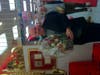 What did they walk out with? Along with their purchases, Sarris Candies gave each customer a small, pink box of candy with the a gold sticker that reads, "We're back thanks to you!"