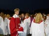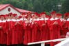 The band played a processional march, "Pomp and Circumstance," as a throng of seniors gathered for their graduation ceremony, the boys in crimson and the girls in white.