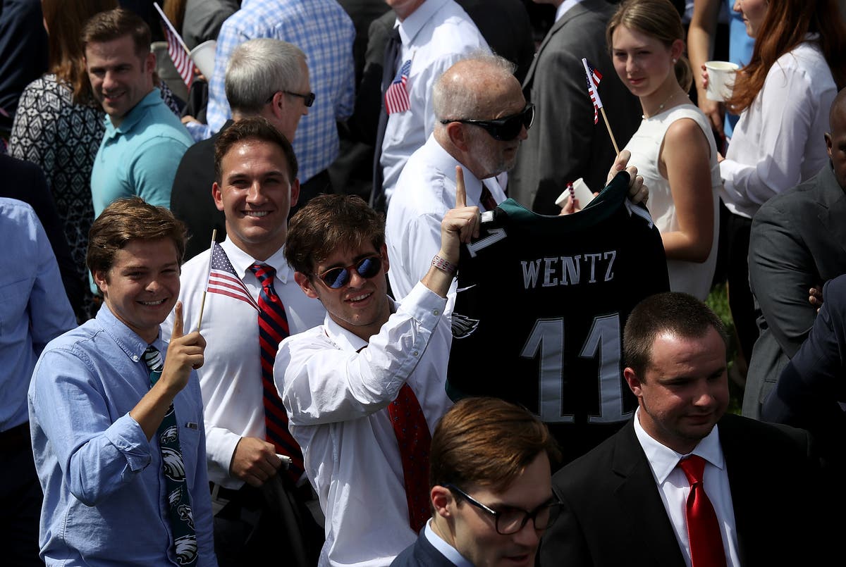 Image: Philadelphia Eagles fans attend a 'Celebration of America' event on the south lawn of the White House June 5, 2018 in Washington, DC. The event, originally intended to honor the Super Bowl champion Philadelphia Eagles, was changed after the majority of the team declined to attend the event due to a disagreement with Trump over NFL players kneeling during the national anthem. (Photo by Win McNamee/Getty Images)