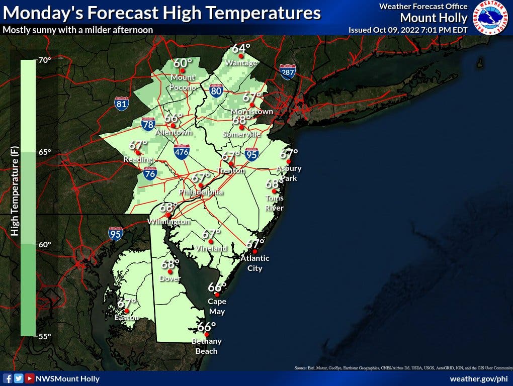 The shift in weather comes in the wake of the coldest nights of the fall on Saturday and Sunday, which saw temperatures drop to the upper 30s and low 40s in much of the Philadelphia suburbs.