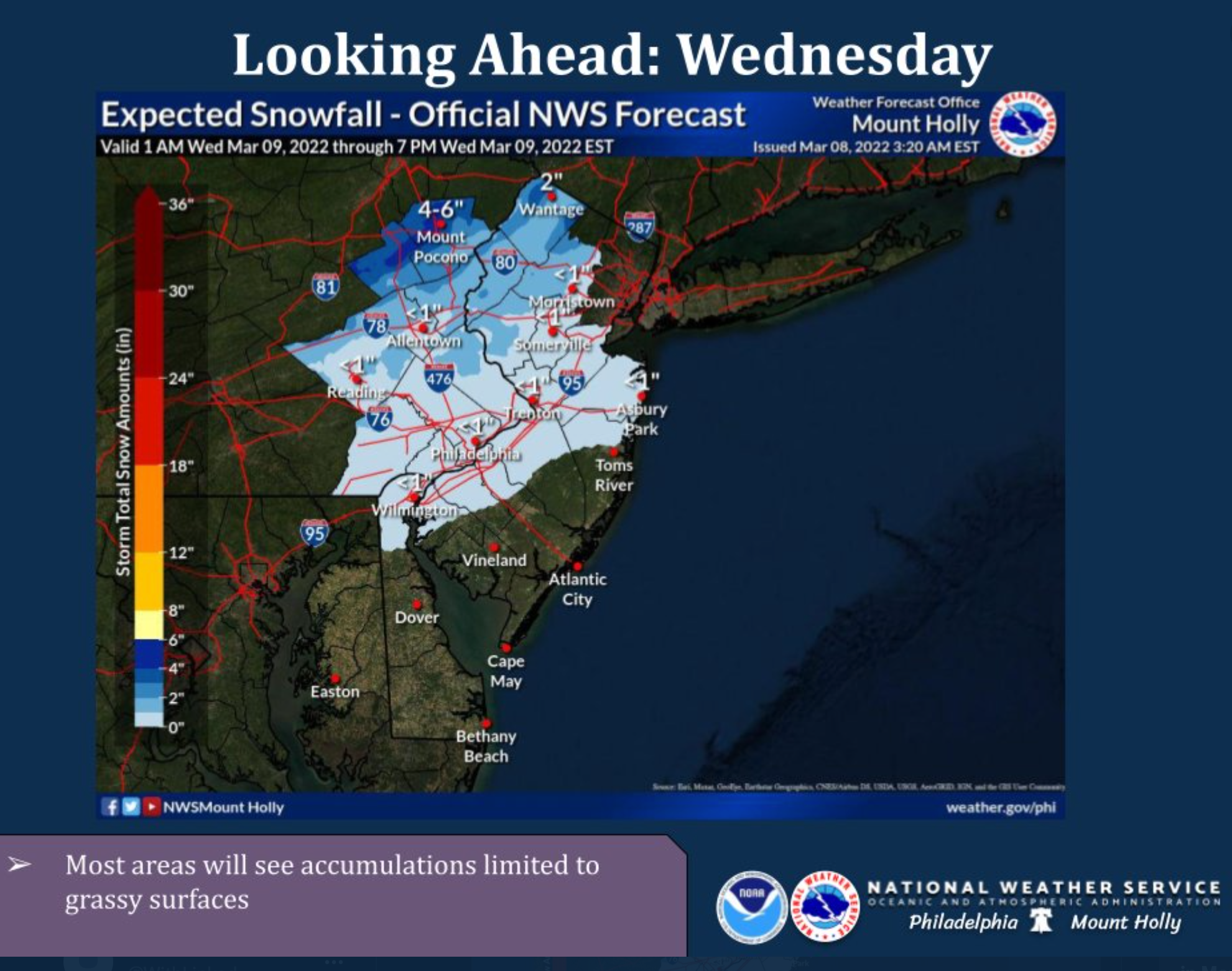 Starting at around 3 a.m. some precipitation is expected, and that is predicted to continue throughout most of the day Wednesday and into the early evening hours on Wednesday evening. While accumulation totals could reach around 4 inches in parts of New Jersey and further up int he Poconos, most of the greater Philadelphia area should expect an inch or less, according to forecasters.