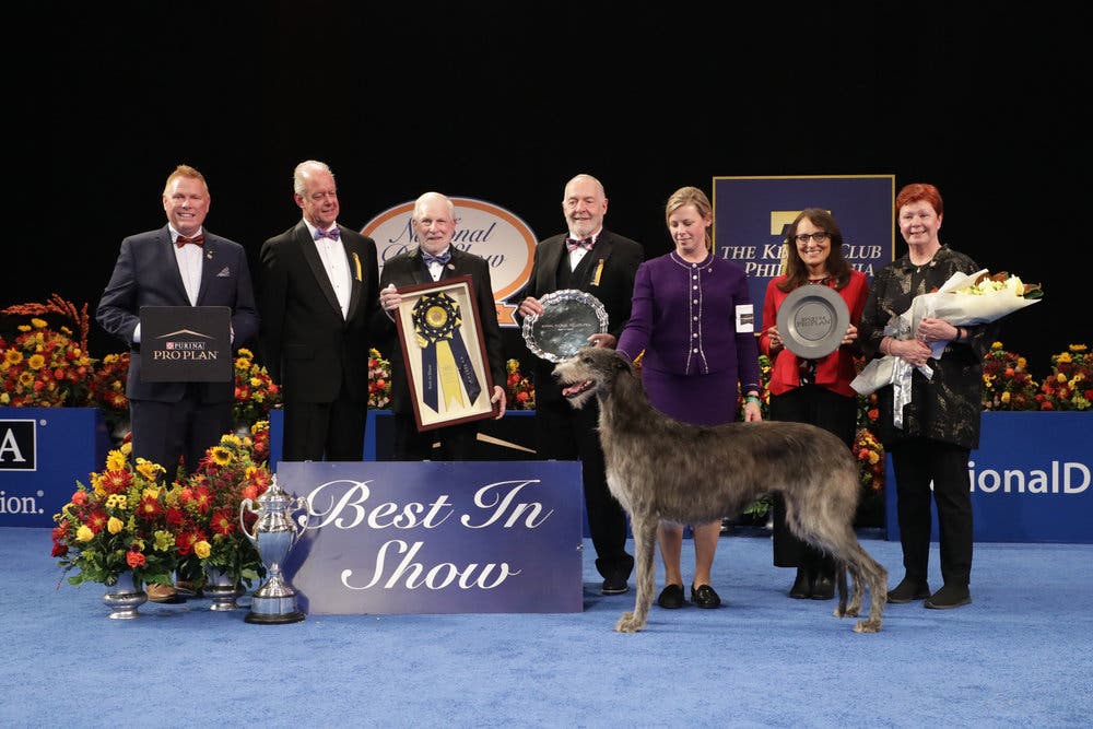 The Scottish deerhound Claire, who claimed the National Dog Show crown for the second consecutive year, had plenty of adorable competition.