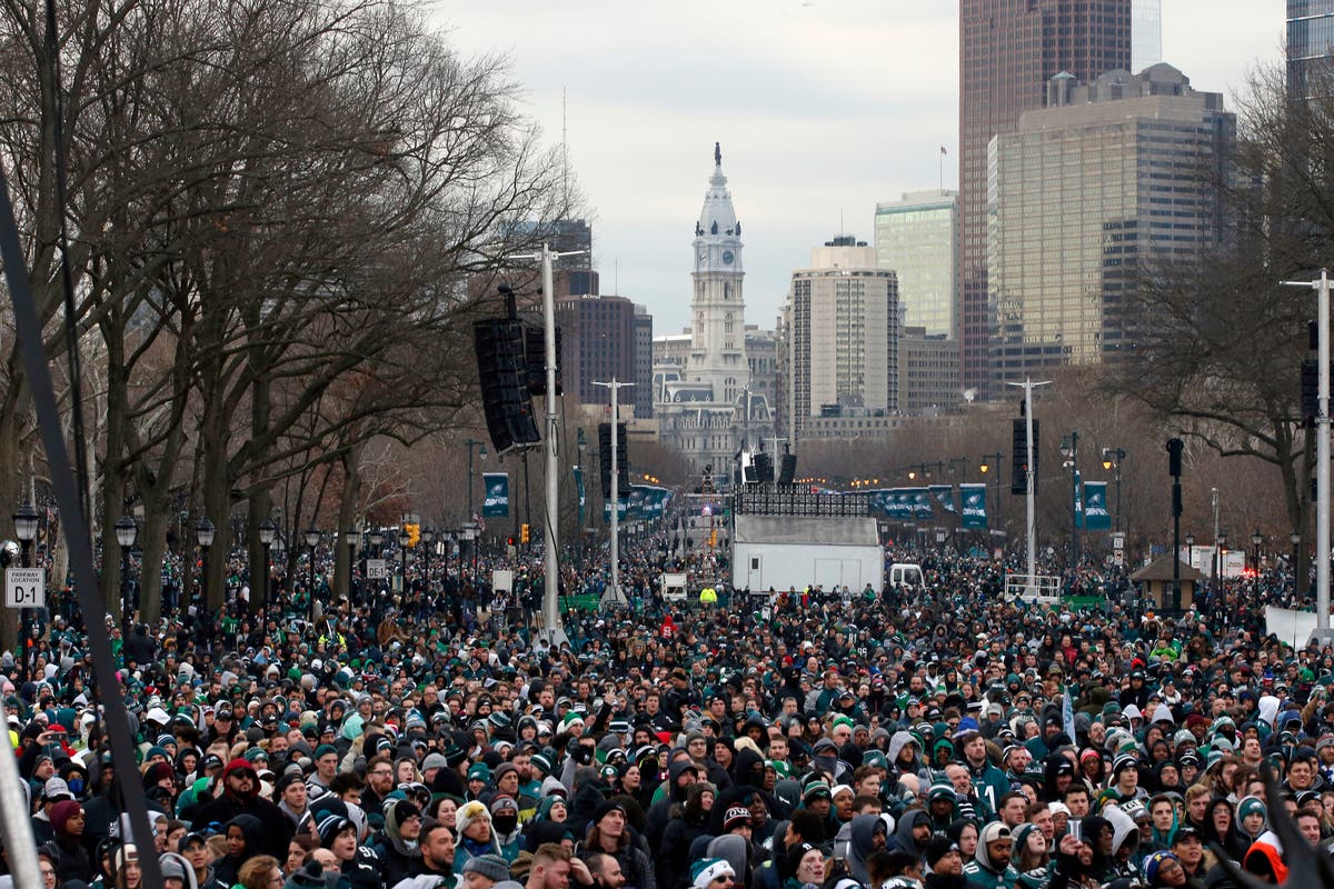 Fans line Benjamin Franklin Parkway before a Super Bowl victory parade for the Philadelphia Eagles football team, Thursday, Feb. 8, 2018, in Philadelphia. The Eagles beat the New EnglandPatriots 41-33 in Super Bowl 52. (AP Photo/Alex Brandon)