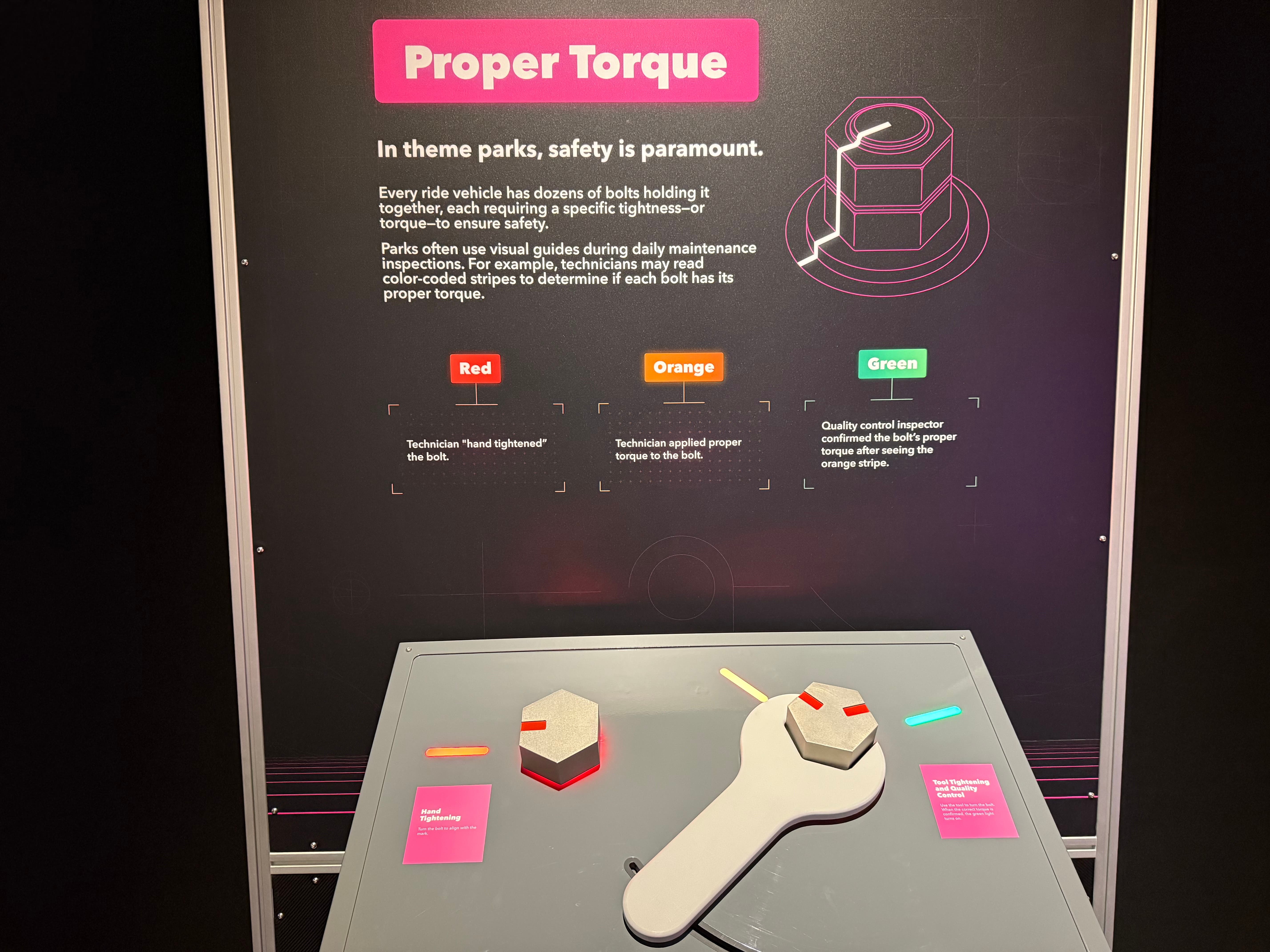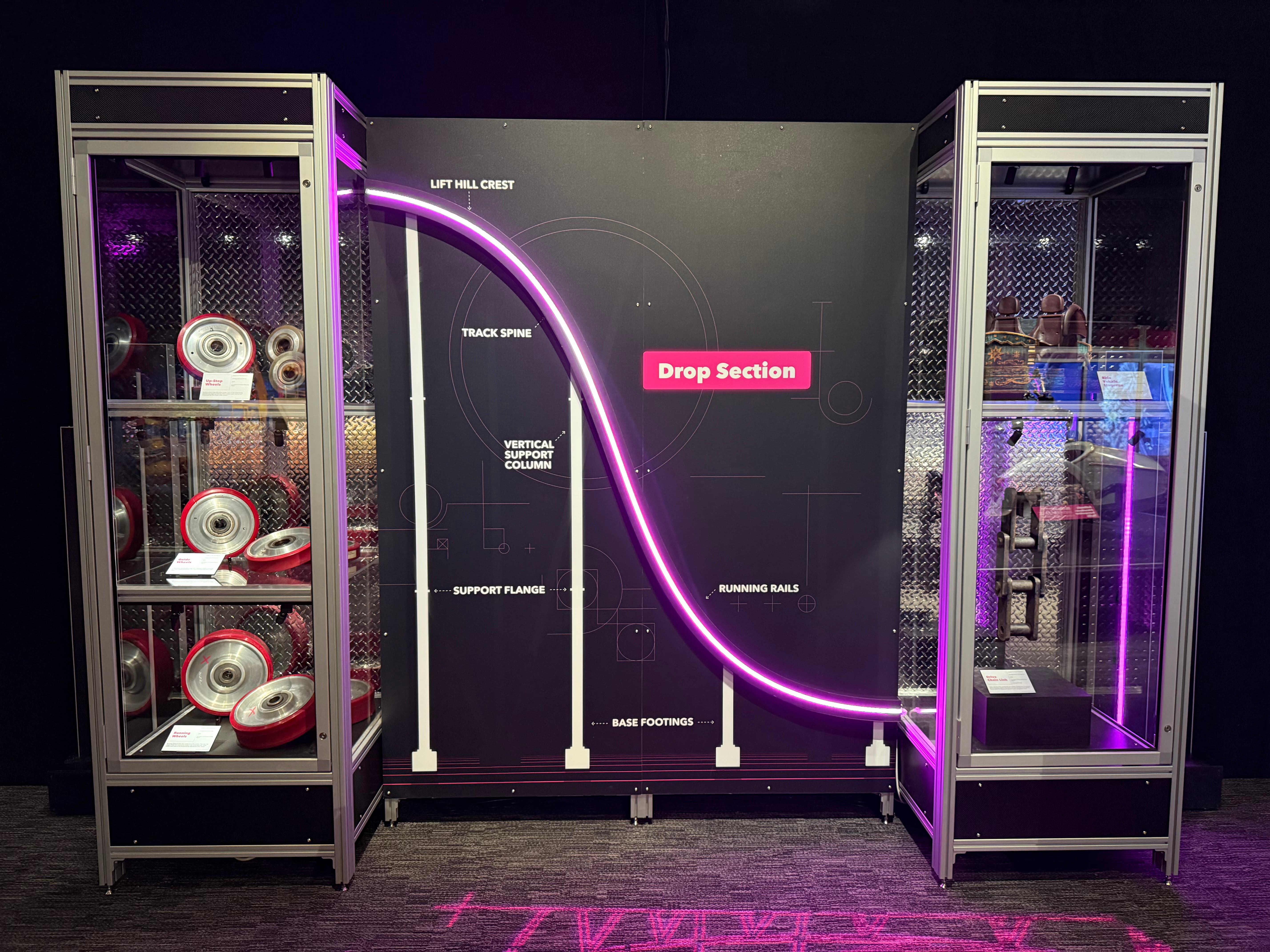 The exhibition includes interactive elements, such as designing roller coasters, programming light shows, creating themed desserts, animatronic controls, and more.