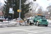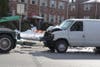 The airbag in the white van deployed. The van sustained major damage and was towed from the scene by Pejey’s Auto Body.