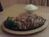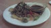 Suddenly, the door to the kitchen burst open and our waitress came running out and set an iron plate, piled high with beef and still sizzling from the broiler, before Petals. Her teriyaki platter included onion, broccoli, carrot and a savory, simple sauce of soy and meat juices. The bowl of white rice which accompanied the platter was too sticky to be fresh, but Petals felt it complimented her beef nicely.