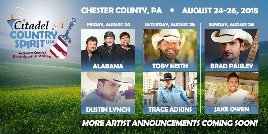 >>Toby Keith, Brad Paisley Head New Chester County Music Festival