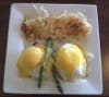 From the “Specialties,” I picked the Crab Benedict ($9.99) which was two perfectly poached eggs (crispy on the edge with the yolk firm enough to be cooked, but soft enough to spread) over lump crab meat on English Muffin halves with hollandaise sauce, two asparagus stalks and a side of homefries.