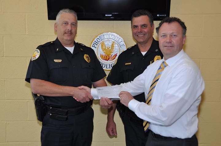Photo credit Phoenixville Police Department, including, left to right: Lt. Sjostrom, Sgt. Marshall and Brian Slater, from Century 21.