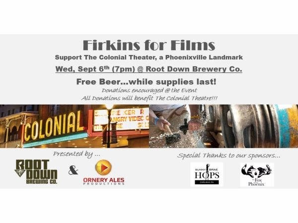 The "Firkins for Films" event will feature free samples from two firkins of Pennsylvania IPA made by Root Down.