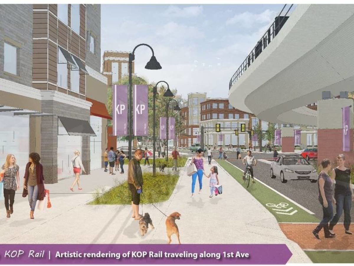 The proposal by the KOP Rail Coalition would expand the existing Norristown High Speed Line, adding an elevated rail with four stops in King of Prussia.