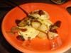 Appetizers include unusual selections such as Apple Bruschetta, Apple Ravioli, Beer Battered Asparagus and Fried Macaroni and Cheese. There are more familiar choices such as Stuffed Zucchini, Spinach Dip and Stuffed Banana Peppers. Appetizers cost $6 to $11. We had the Apple Ravioli and the Beans and Greens with Sausage (for an extra $1). Both were very good. The beans and greens were some of the best we've had and were quickly gone. The apple ravioli was different -- and I don't mean that in a bad way. I think my daughter summed it up best when she said, "This is delicious, but I'm glad I ordered it as an appetizer." As an entrée, it would be almost too much apples and cinnamon.Â